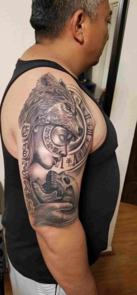 Detalles que respiran vida. Cada sombra, cada textura, cada mirada. El tatuaje realista transforma tu piel en una obra de arte que parece salir del lienzo. Si buscas impacto visual y profundidad emocional, este estilo lo tiene todo.